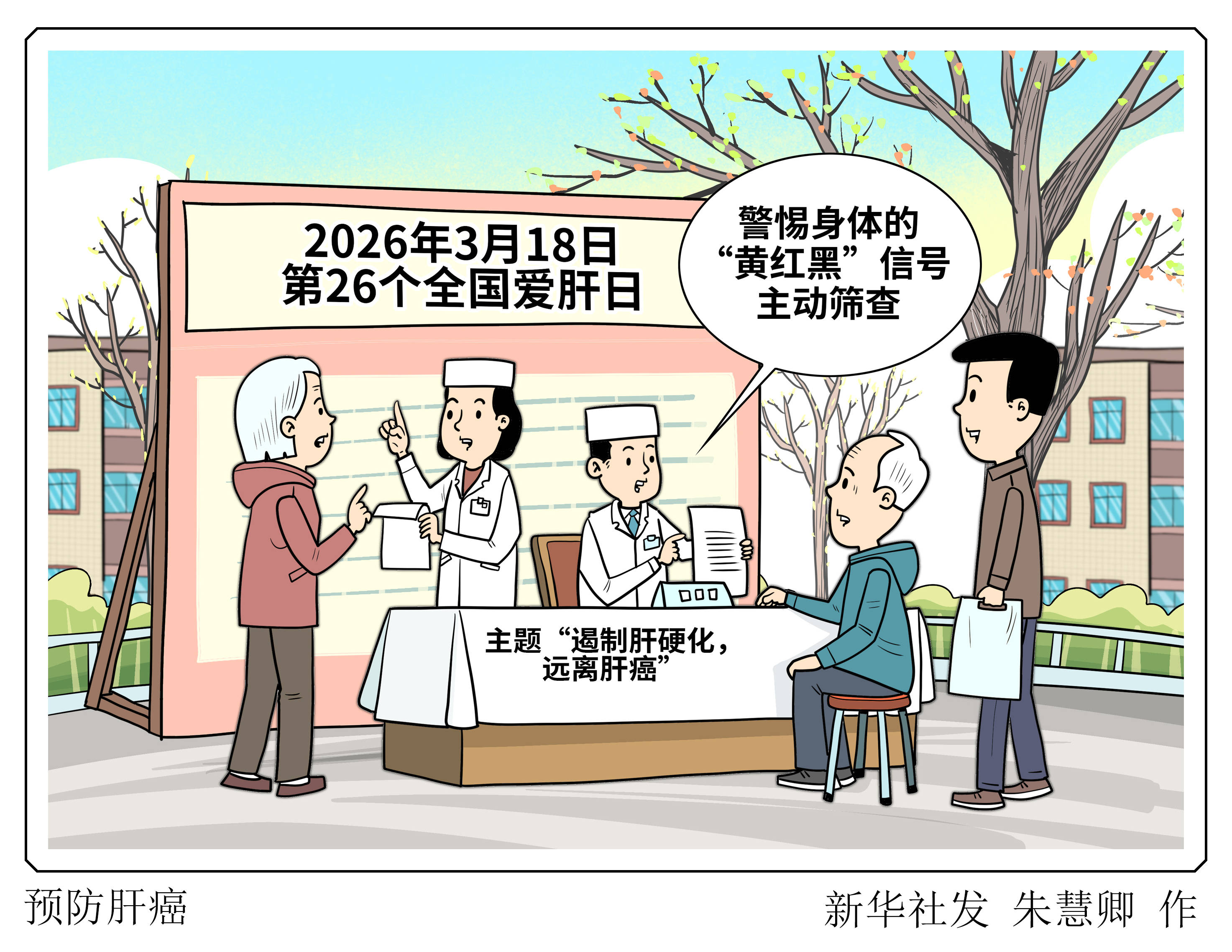 今年3月18日是第26个全国爱肝日,主题为“遏制(zhi)肝硬化,远离肝癌”。专家(jia)介绍,肝脏几(ji)乎没有痛觉神(shen)经(jing),代偿能力极强(qiang),早期肝癌几(ji)乎无(wu)症状。但是,一旦进入肝功能失(shi)代偿的中期甚至晚期,身体往往会发出典型的“黄(huang)红(hong)黑(hei)”三色警报(bao)——黄(huang):皮(pi)肤、眼白变黄(huang),尿液颜色像浓茶,这是黄(huang)疸(da)。红(hong):出现“蜘蛛痣(zhi)”,即胸(xiong)前、颈部出现带红(hong)点的血丝;或出现“肝掌”,即手掌心(xin)泛白,大鱼(yu)际、小鱼(yu)际发红(hong),与普通人(ren)的手掌皮(pi)肤均匀呈(cheng)现淡红(hong)色有所不同。黑(hei):大便颜色突然变黑(hei),像柏油一样发亮(liang),这是提示消化道出血。